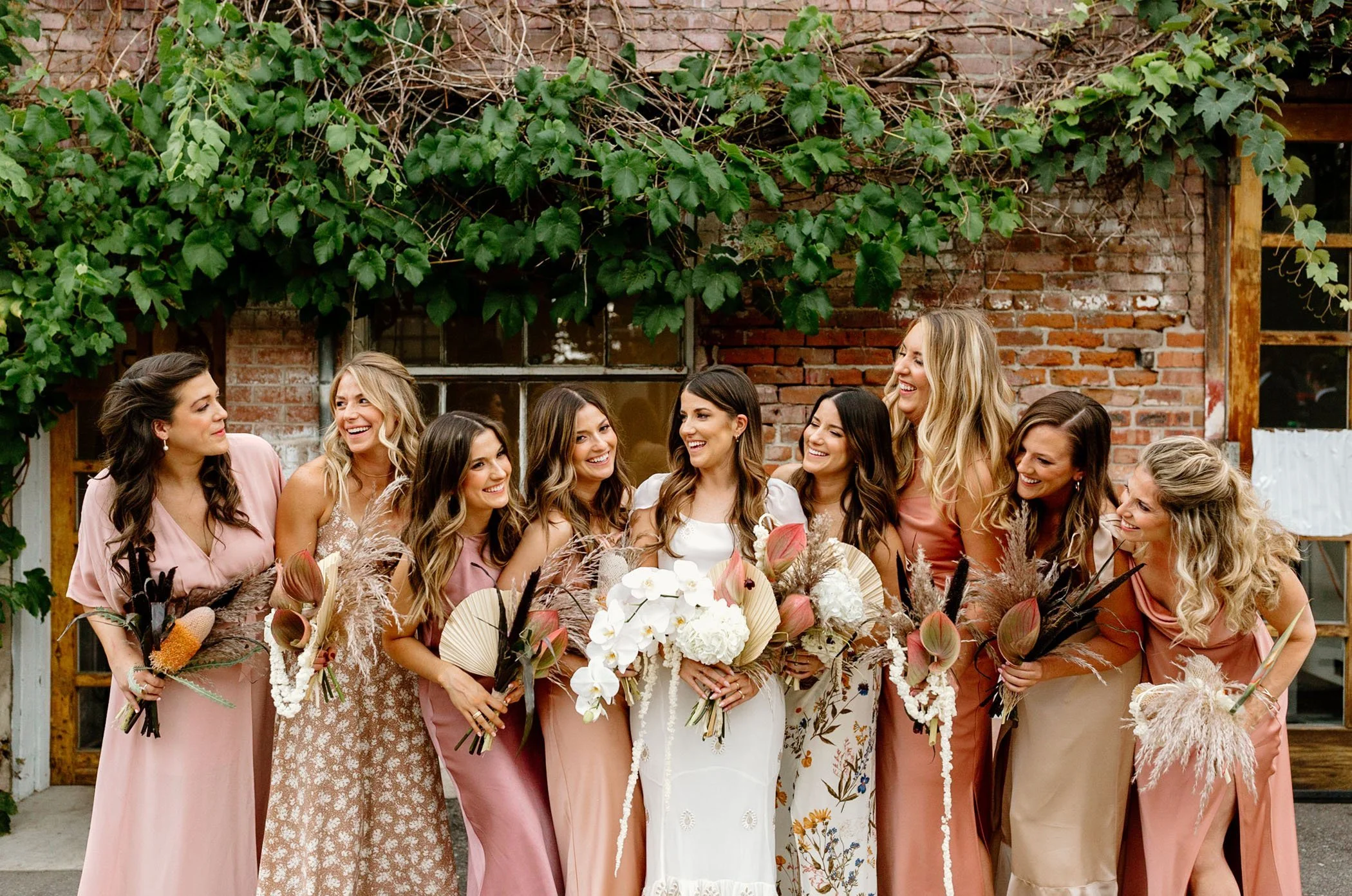 Creating cohesive looks for bridesmaids, featuring matching hairstyles.